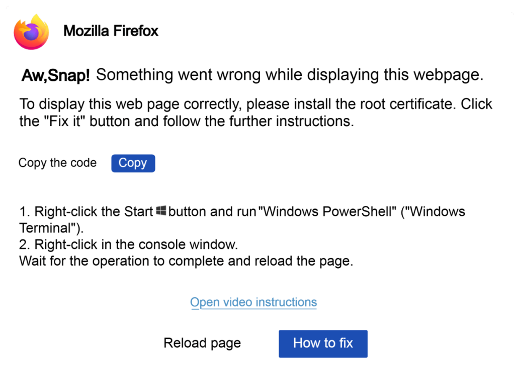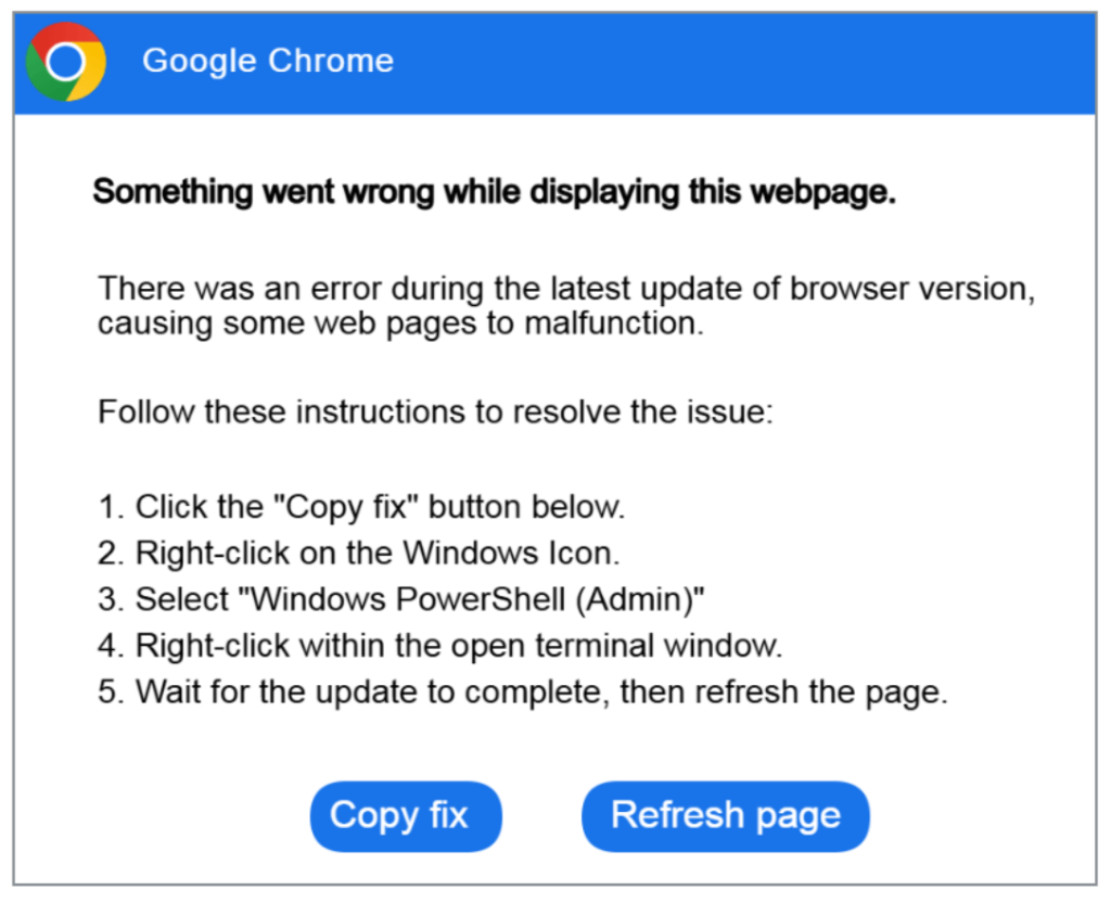 ClickFix is a scam technique where criminals create fake error messages on websites to trick you into copying and pasting a command into your computer. When you run that command, it secretly downloads malware.